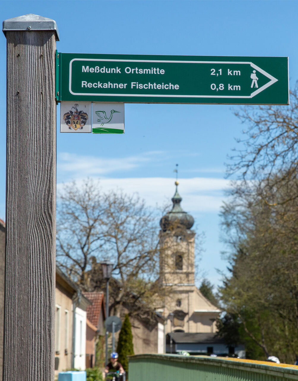 Auf dem Weg streift man den wunderschönen Gutspark. Nach dem Überqueren eines Grabens, hat man die Möglichkeit, die Erbbegräbnisstätte der Rochows von außen zu besichtigen. Weiter dem Wegweiser „Meßdunk“ folgend, erwarten den Naturfreund meist schattige Abschnitte. Linker Hand, zwischen dem Gutspark und dem Örtchen Meßdunk, befinden sich fisch- und vogelreiche Teiche. An einigen Stellen können beispielsweise Wildenten, Kormorane, Schwäne, Seeadler, Fischreiher, aber auch Möwen aus der Nähe beobachtet werden.